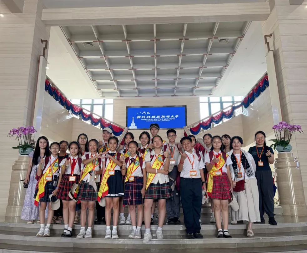 午饭过后,小伙伴们手拉手,漫步于中西合璧的美丽校园。校园内高悬的“深北莫之星”哥特式塔楼,白色高大的建筑营造出肃穆神圣之感,亲身感受大湾区国际化教育的独特魅力。