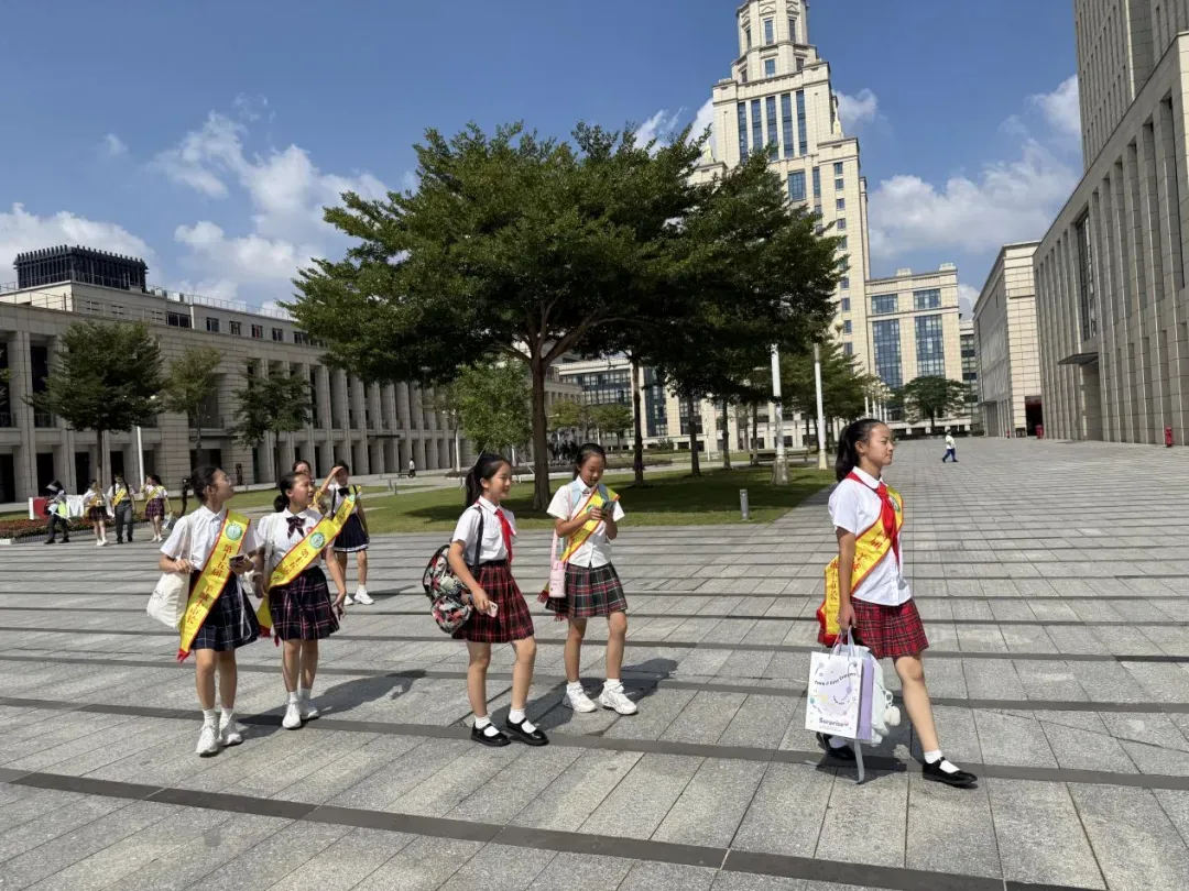 孩子们兴奋地在此合影,镜头定格下他们与这座融合了中俄现代设计美学的建筑同框的瞬间,青春的活力与未来的宏图在此交相辉映。
