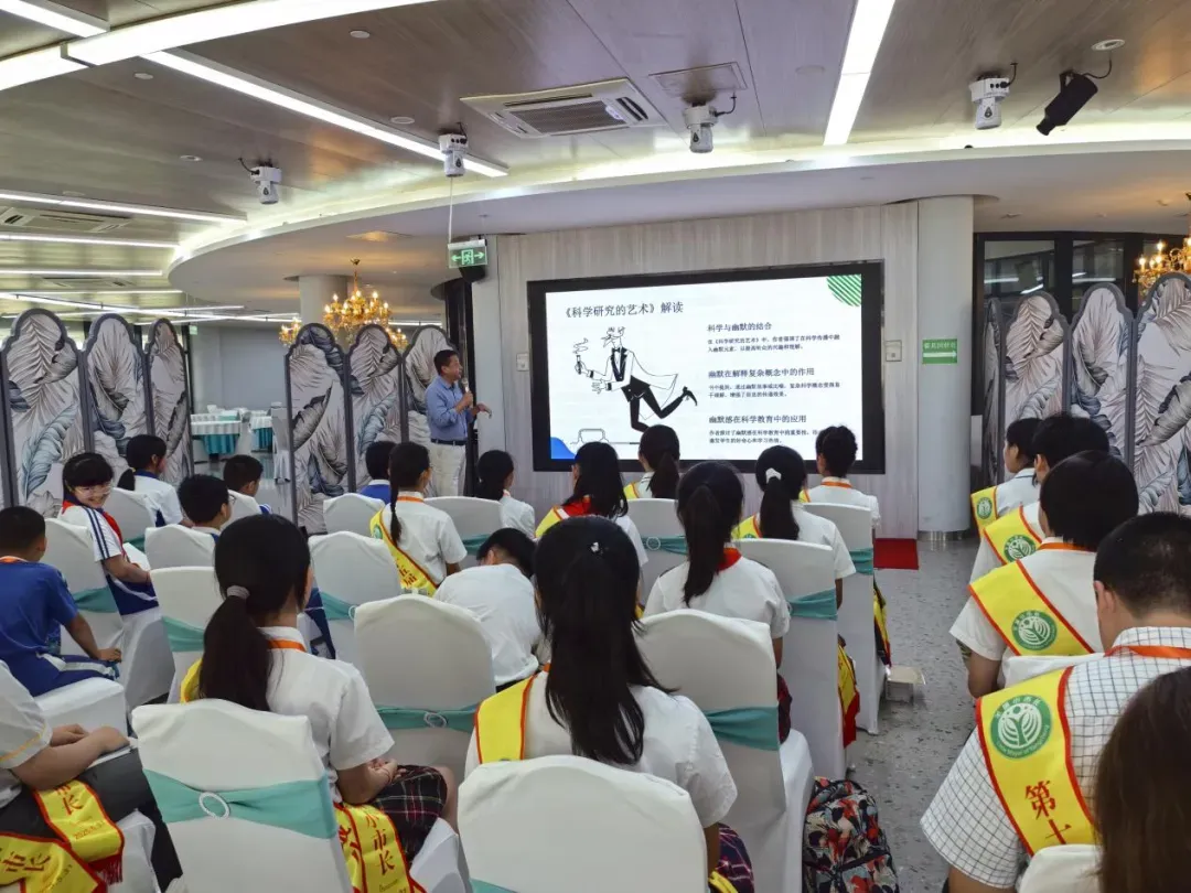 “结对仪式”后,刘教授给孩子们带来了一堂生动有趣的《科普讲解员的心得体会》课堂,从幽默感的重要性、门捷列夫的贡献,讲到了一门外语的意义,在欢声笑语中,在孩子们心中播下了热爱科学的种子。
